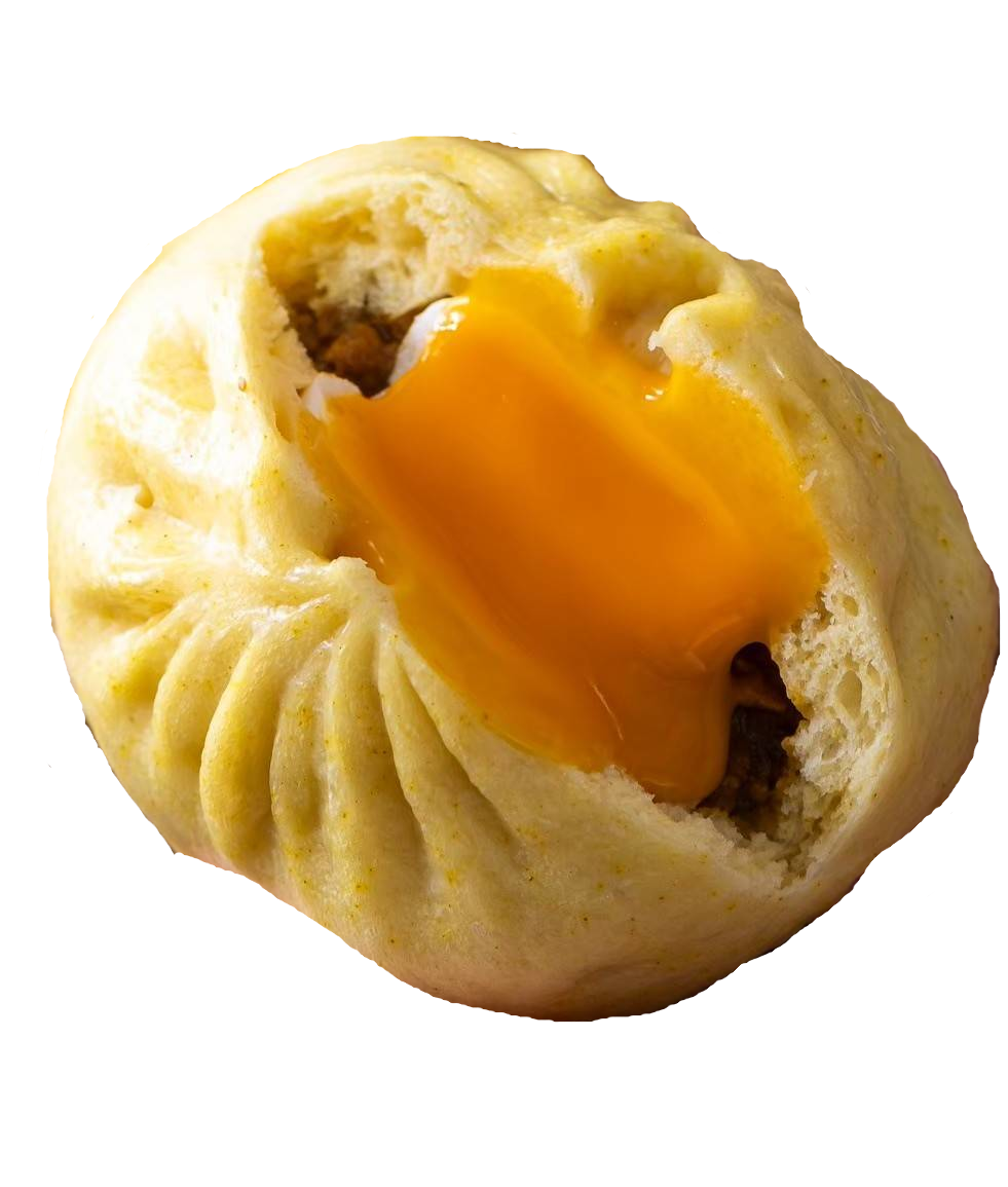愛知を代表する名古屋コーチン、知多三元豚、野崎白菜、小麦粉のきぬあかり、そして隠し味の八丁味噌。なごやの美味しいを肉まんに贅沢に包んだ「招福まんシリーズ」。たまごが贅沢に一個入った招福コーチンカレーまんも自慢の逸品です。