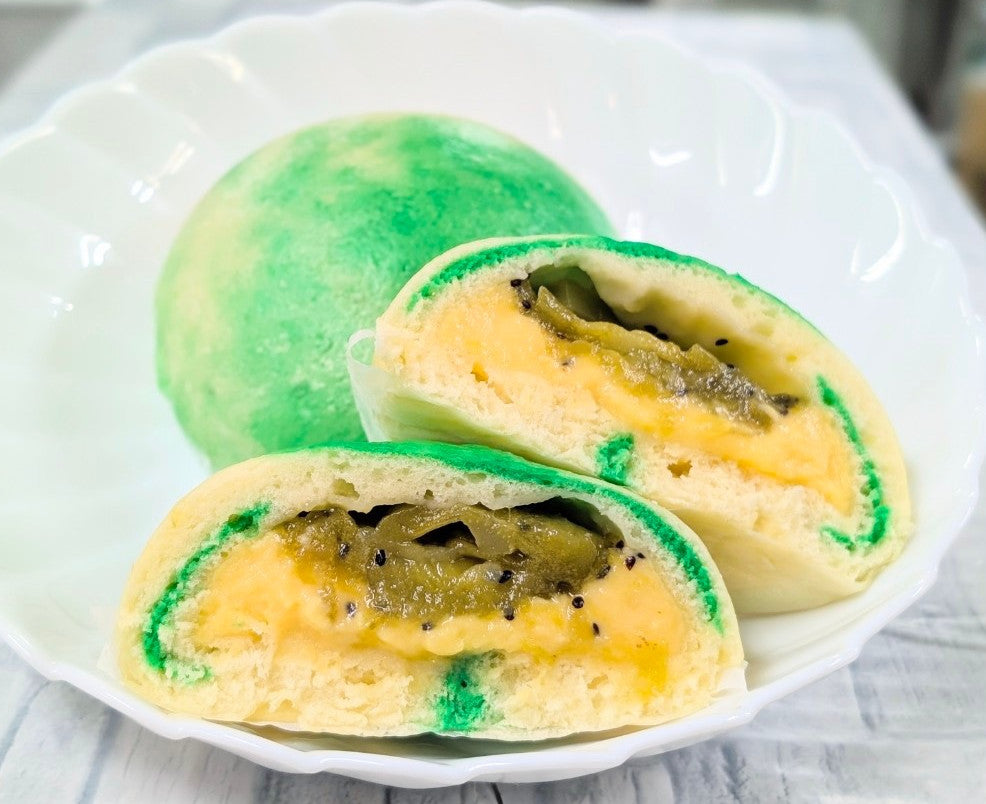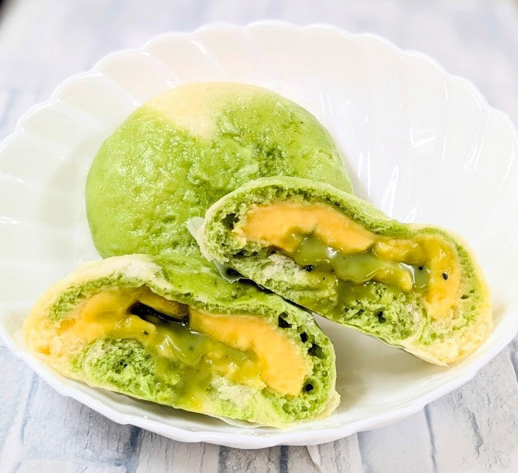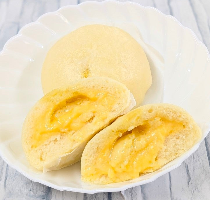 愛知県の素材を使ったカスタードまん! カスタードまんの最大のこだわりは、卵と牛乳です。 卵は、愛知の地鶏”名古屋コーチン”の卵黄のみを使用した濃厚で芳醇な香り。 牛乳は、JA愛知の”どうまい牛乳”を使用しています。 冷たくても温かくてもどちらもおいしくお召し上がりいただけます。